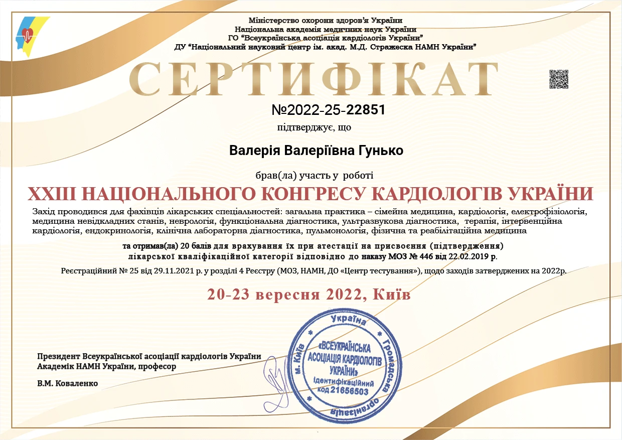 - «ХХІІІ Національний конгрес кардіологів України», 2022